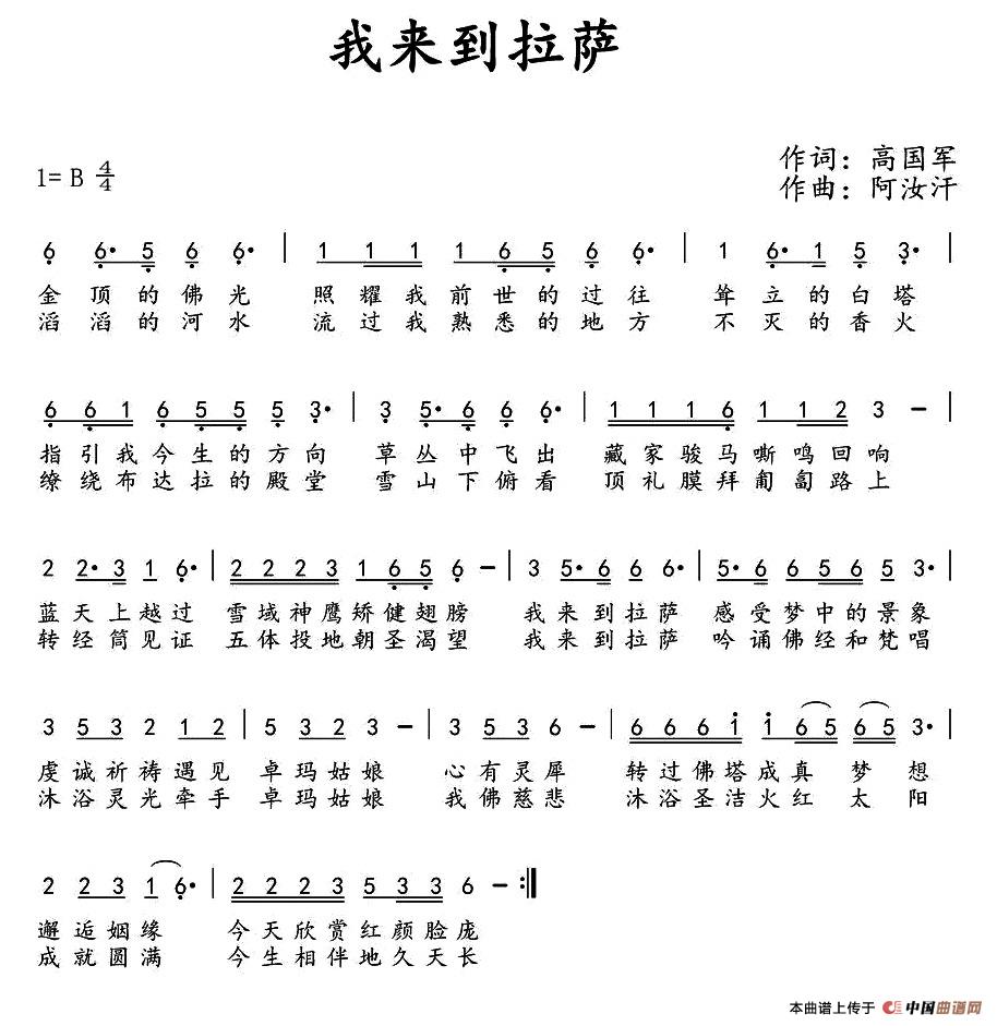 关于《我来到拉萨》曲谱的评论