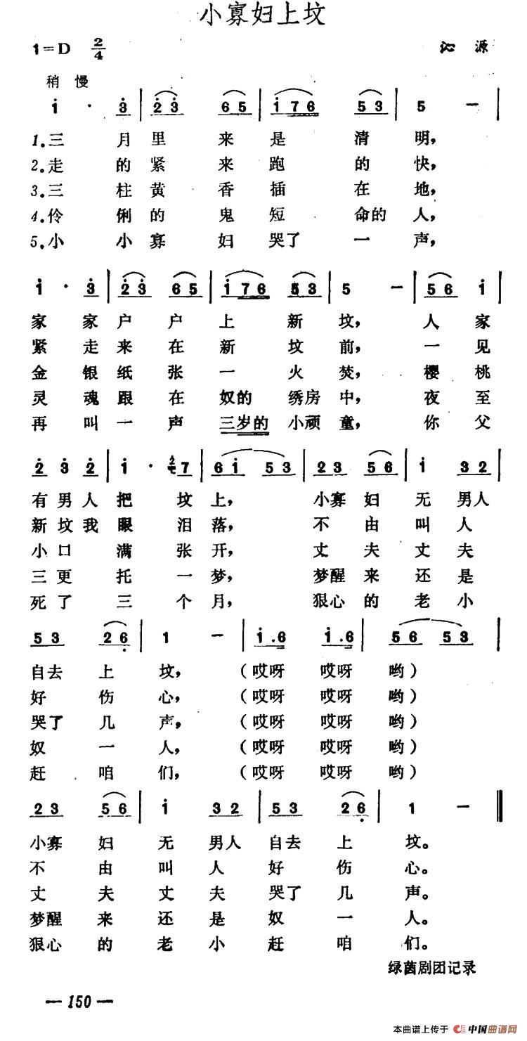 选自山西省音乐舞蹈研究所编著《山西民歌300首》,山西沁源山歌。