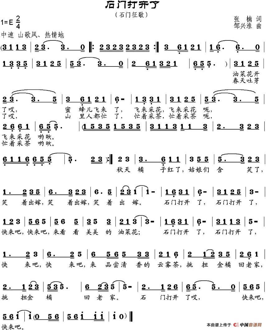 关于《石门打开了》曲谱的评论