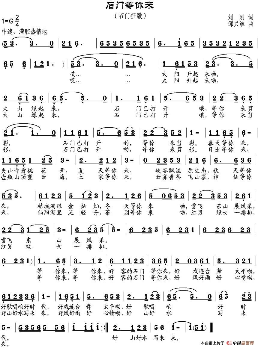关于《石门等你来》曲谱的评论