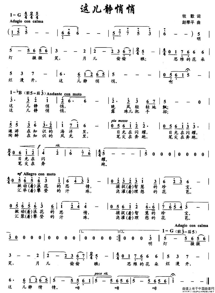 作词:牧歌   作曲:赵季平   格式:简谱   来源:《中国曲谱网》   上传:牧歌《图画之声》   日期:2010-11-29   浏览次数: