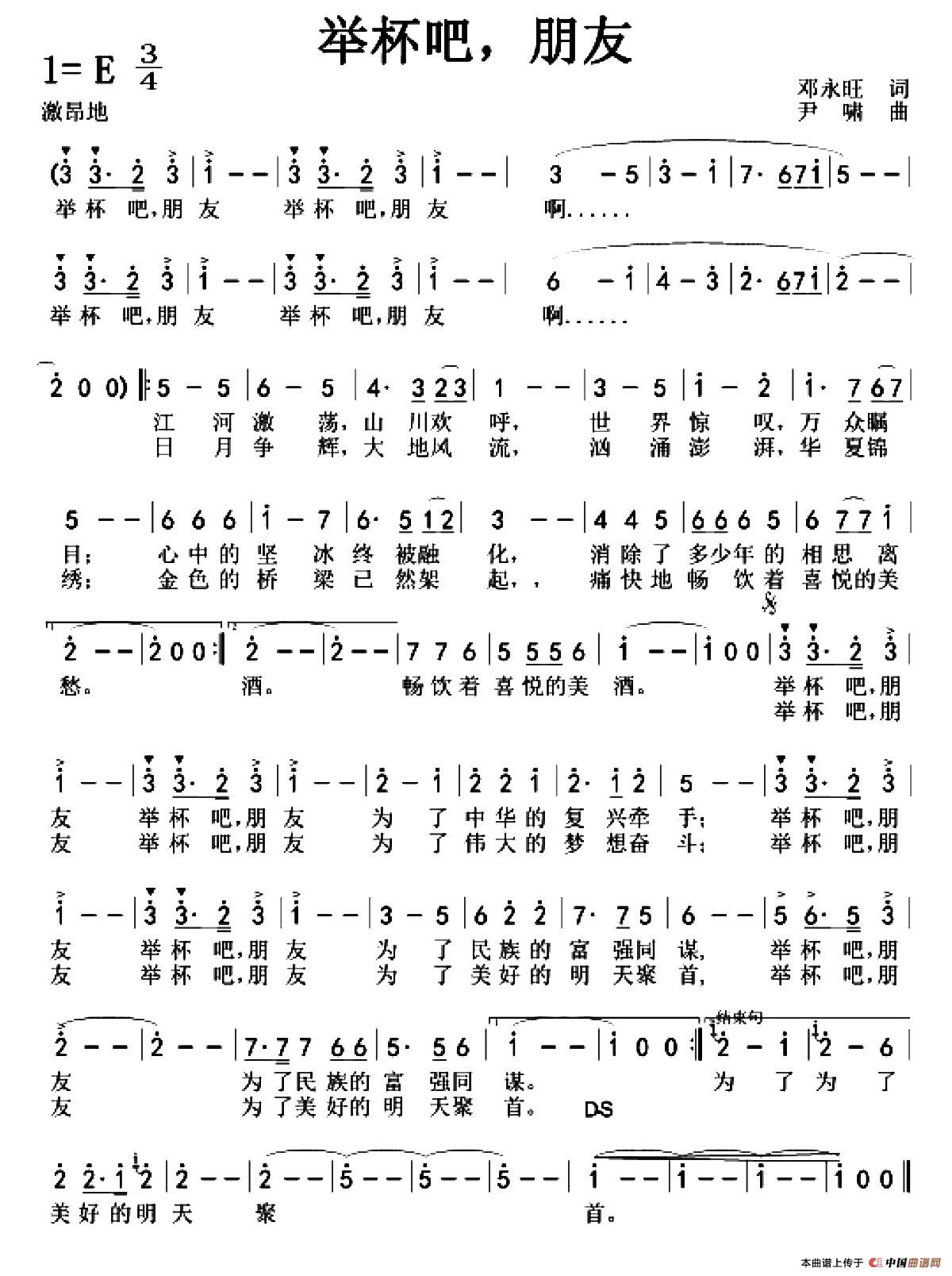 关于《举杯吧,朋友》曲谱的评论