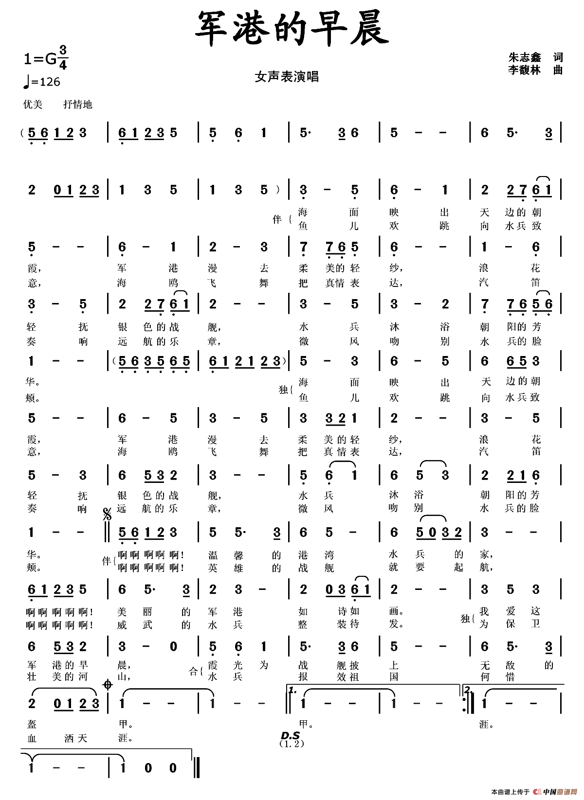 致谢:《中国曲谱网》衷心感谢作者老师馈赠原版歌谱!