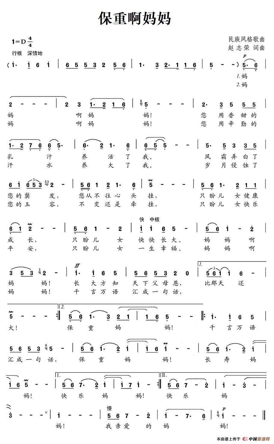 关于《保重啊妈妈》曲谱的评论