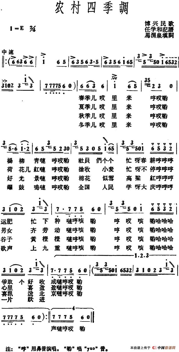 关于《农村四季调》曲谱的评论