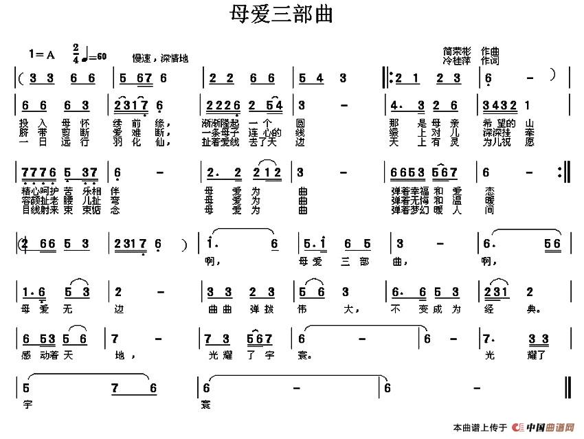 关于《母爱三部曲》曲谱的评论