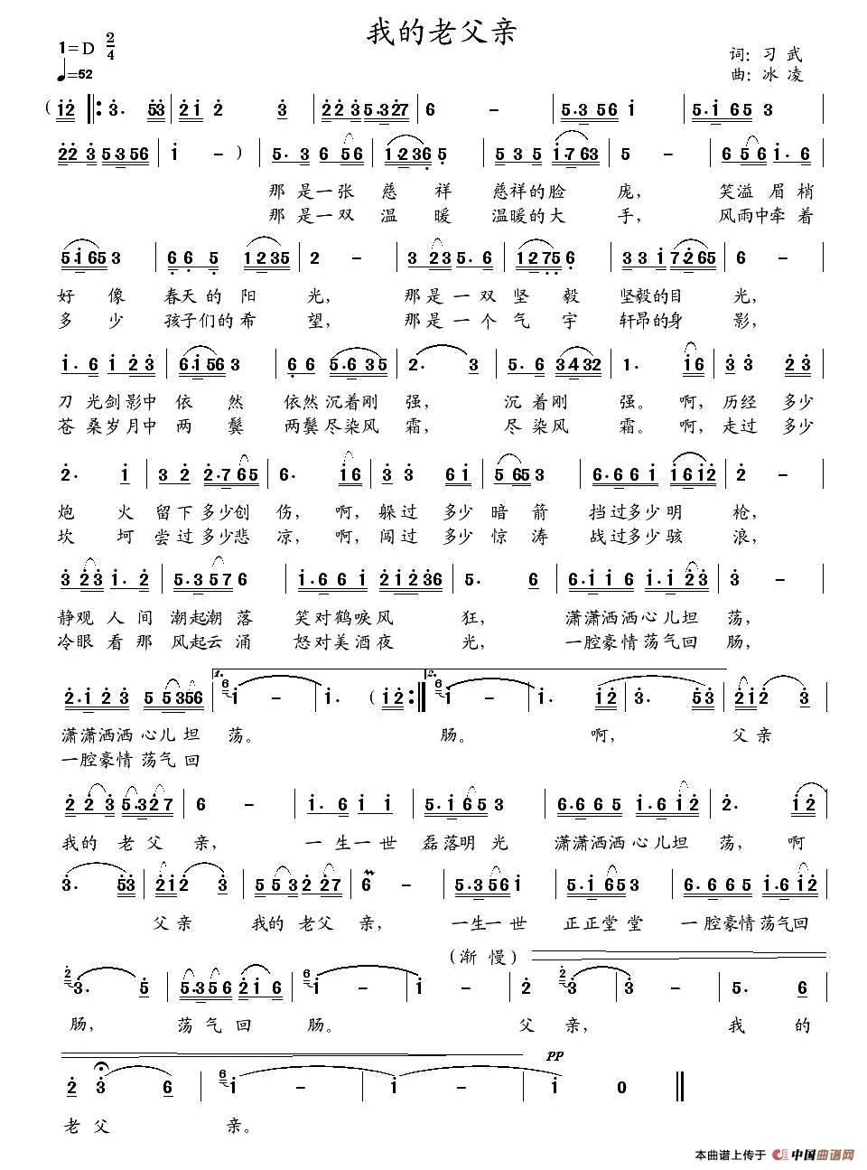 当前位置: 首页 民歌曲谱 五字歌名 我的老父亲(习武词 冰凌曲)