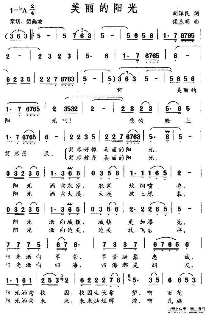 关于《美丽的阳光》曲谱的评论