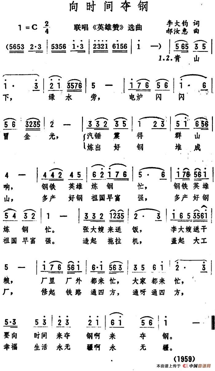 关于《向时间夺钢(联唱《英雄赞》选曲) 》曲谱的评论