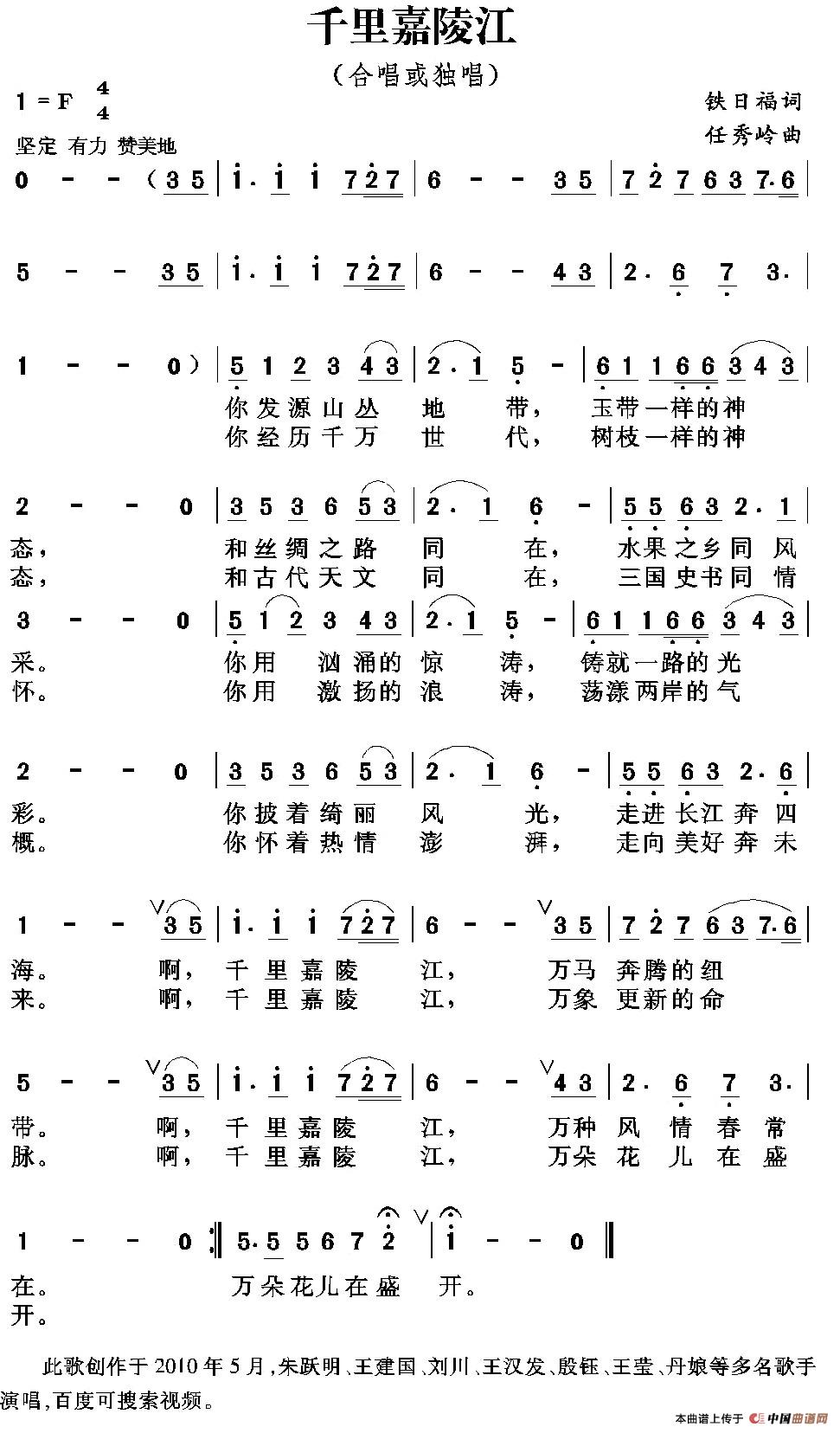 啊, 千里嘉陵 江,万象更新的命 脉。啊, 千里嘉陵 江,万朵花儿在盛开。