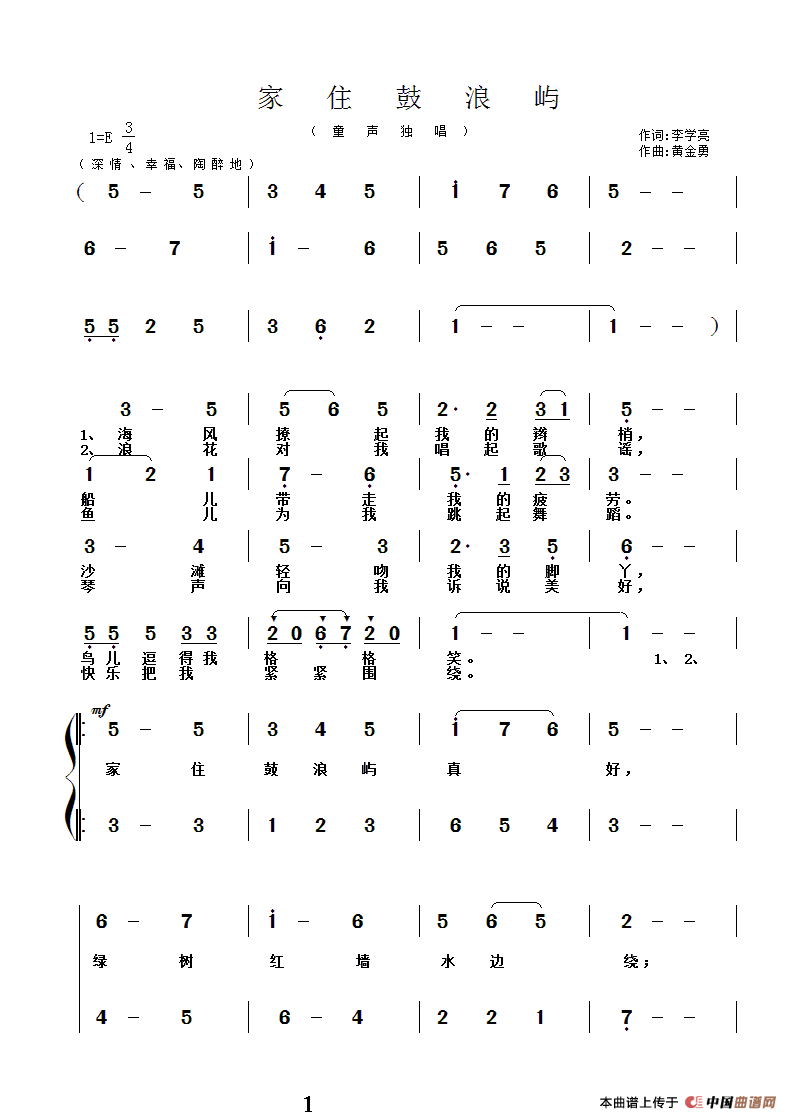 关于《家住鼓浪屿》曲谱的评论