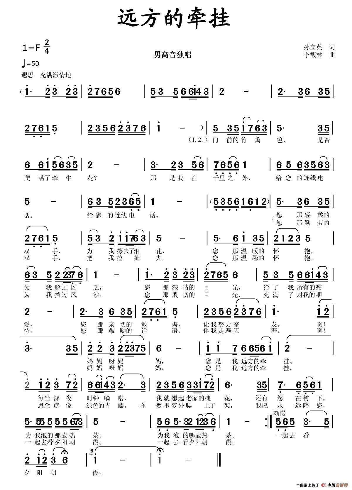 致谢:《中国曲谱网》衷心感谢作者老师馈赠原版歌谱!