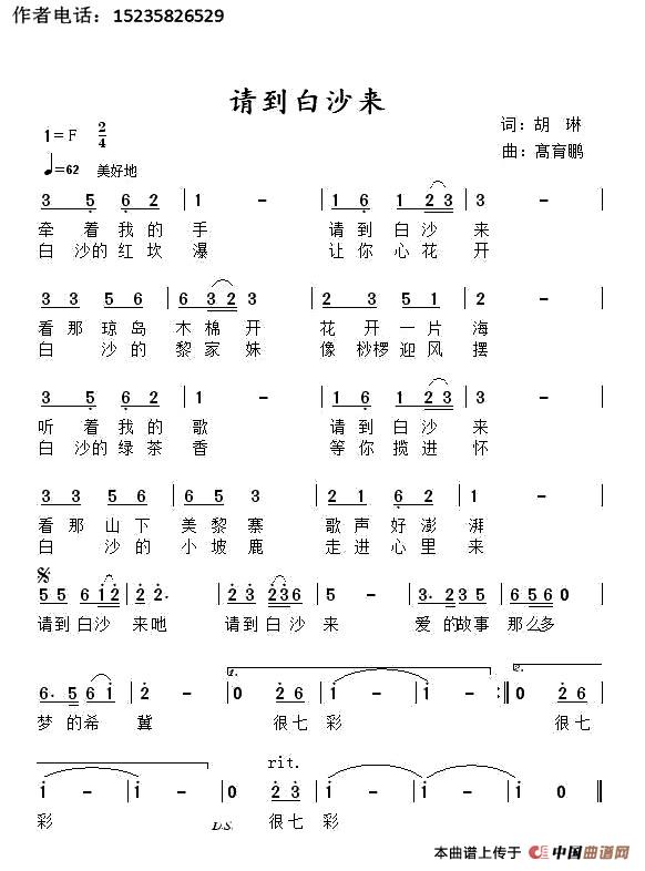 关于《请到白沙来》曲谱的评论
