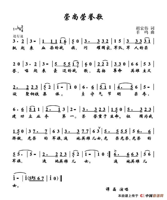 关于《崇尚荣誉歌》曲谱的评论