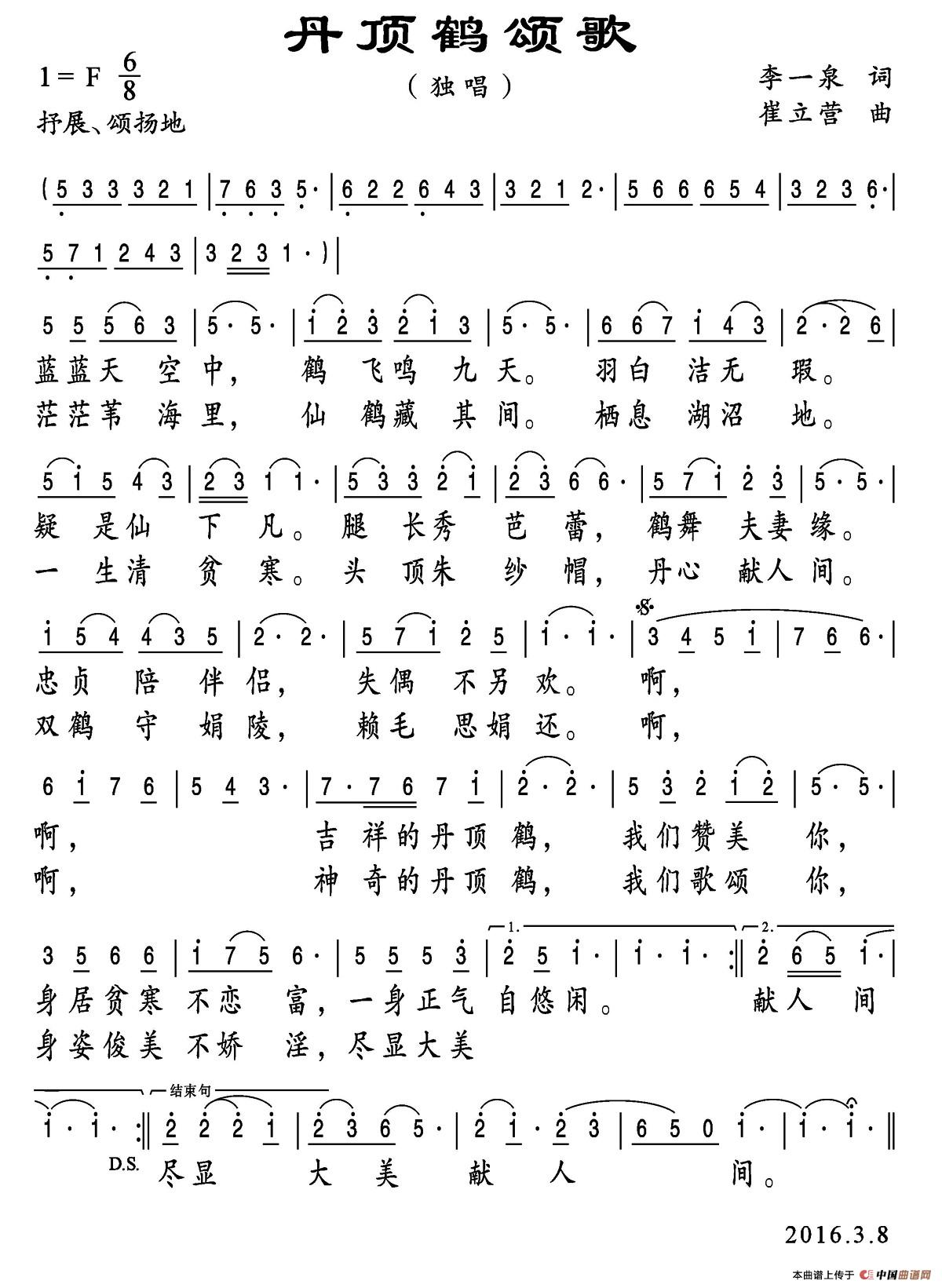 关于《丹顶鹤颂歌》曲谱的评论