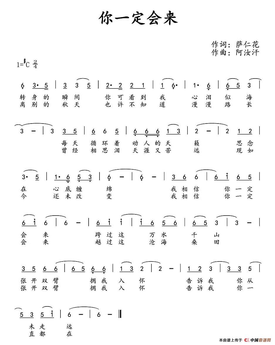 致谢:《中国曲谱网》衷心感谢作者老师馈赠原版歌谱!