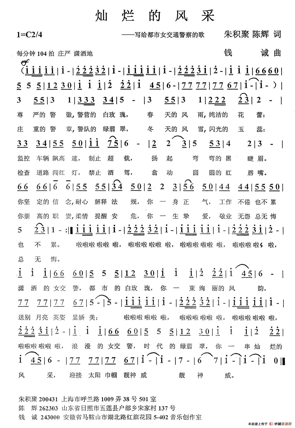 关于《灿烂的风采》曲谱的评论