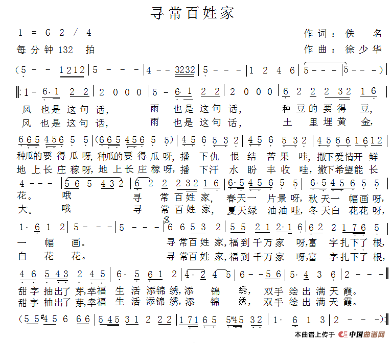 关于《寻常百姓家》曲谱的评论