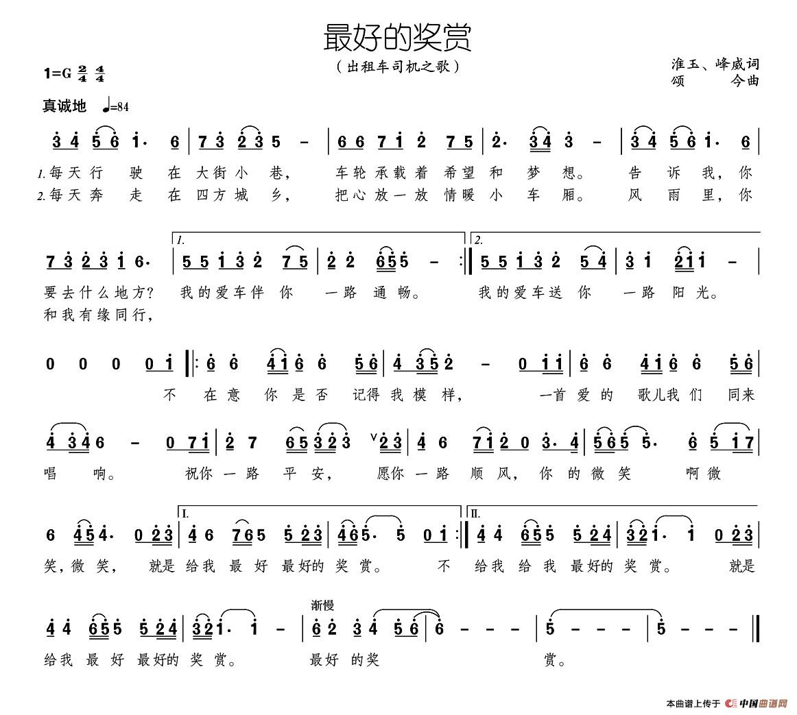 致谢:《中国曲谱网》衷心感谢作者老师馈赠原版歌谱!