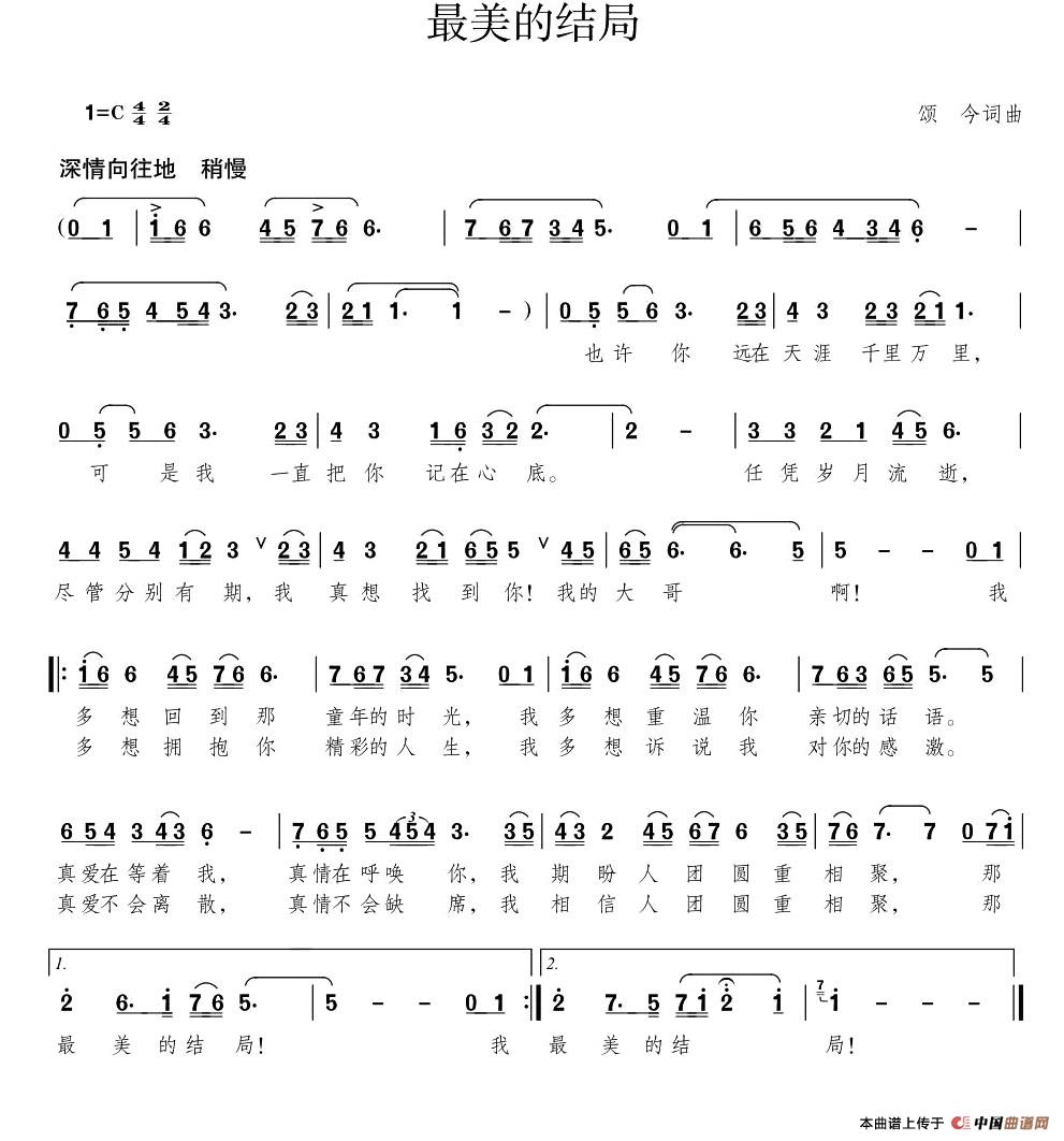 致谢:《中国曲谱网》衷心感谢作者老师馈赠原版歌谱!