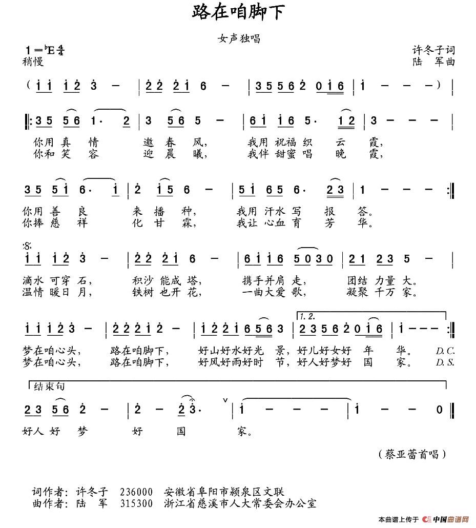 《路在咱脚下》 许冬子 词 陆 军 曲