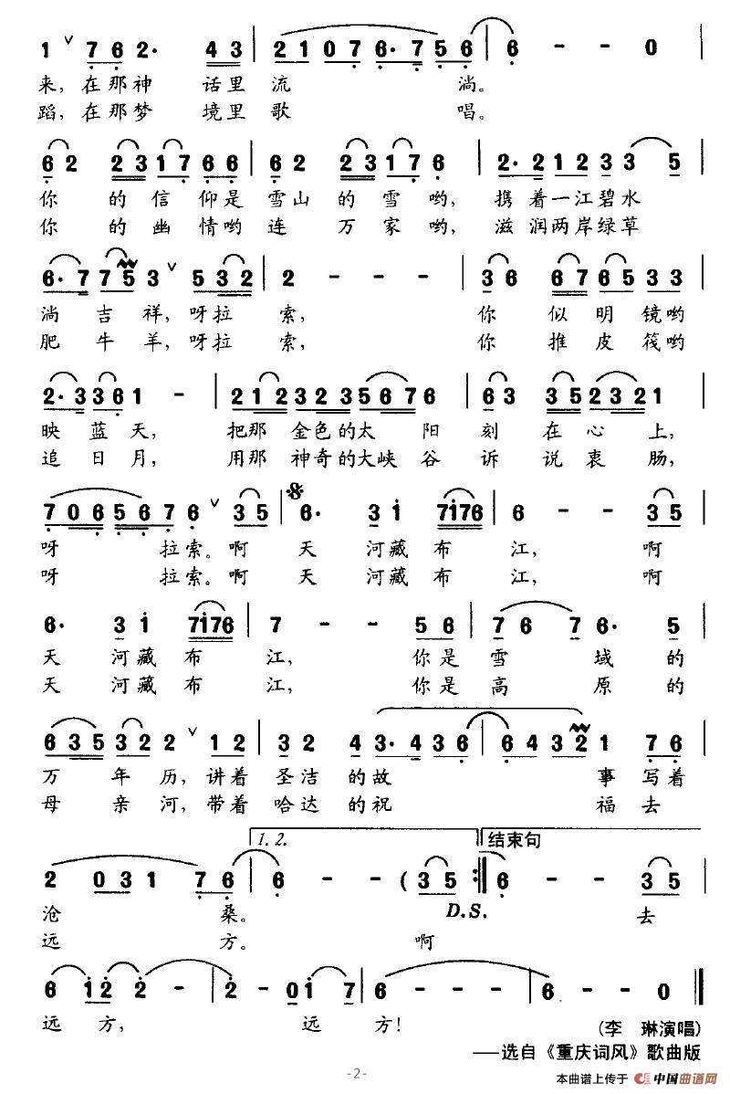 关于《天河藏布江》曲谱的评论
