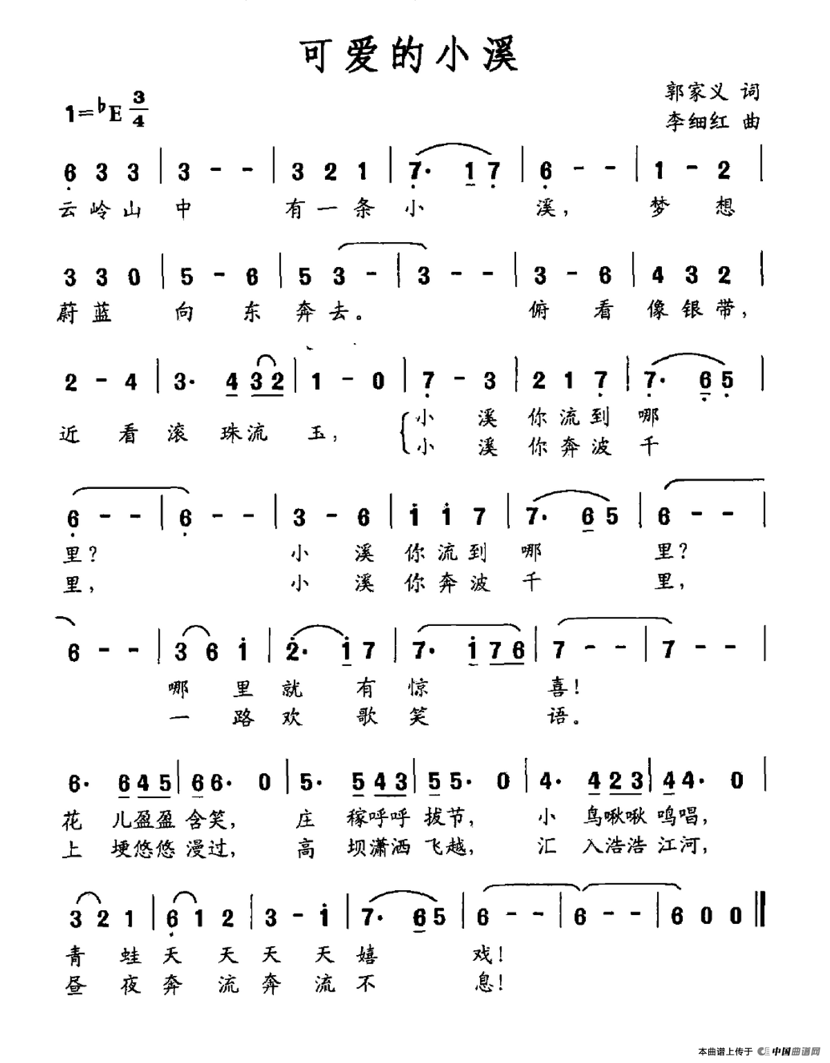 关于《可爱的小溪》曲谱的评论