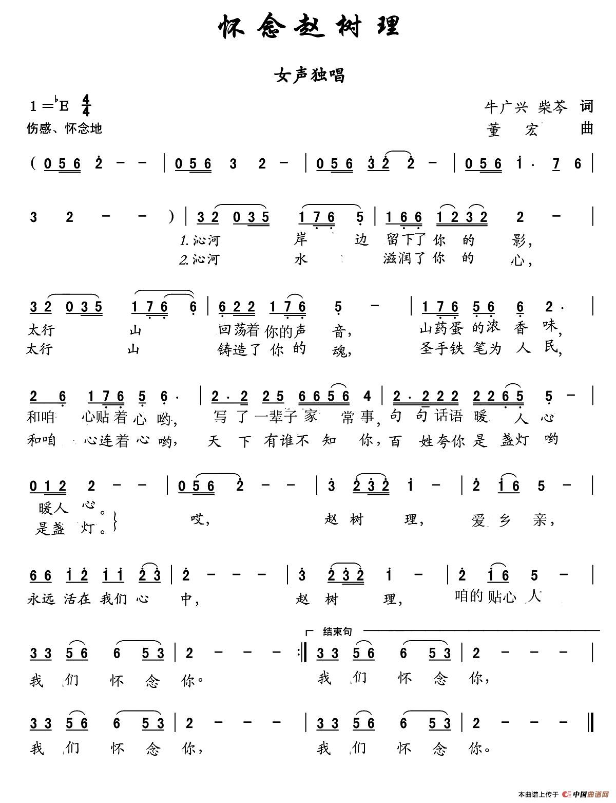 关于《怀念赵树理》曲谱的评论