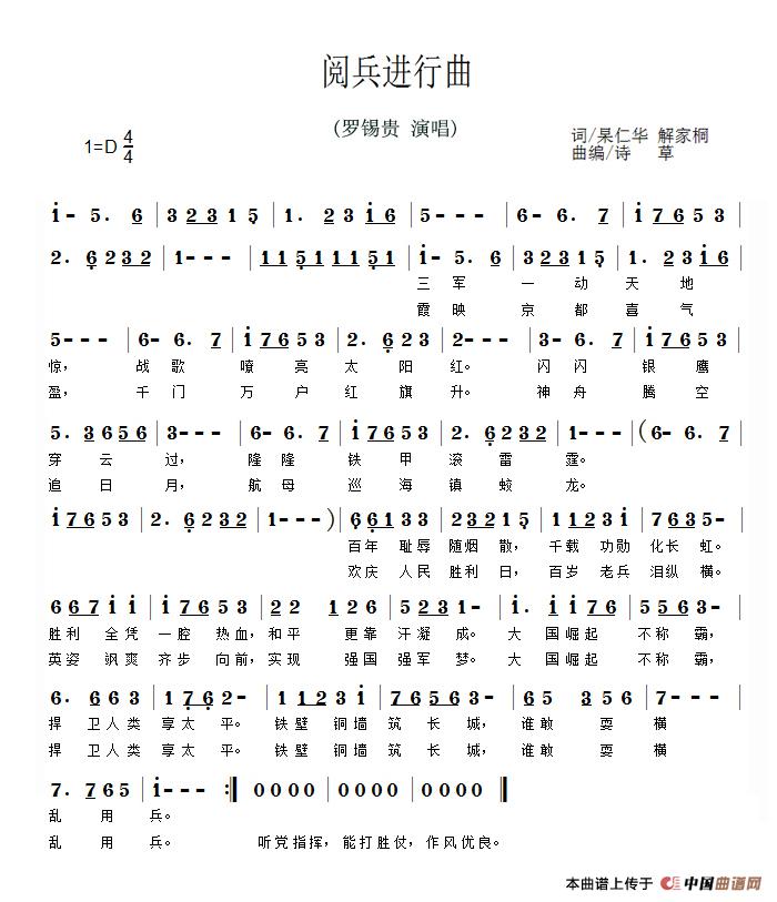 阅兵进行曲(解家桐 杲仁华词 诗草曲)