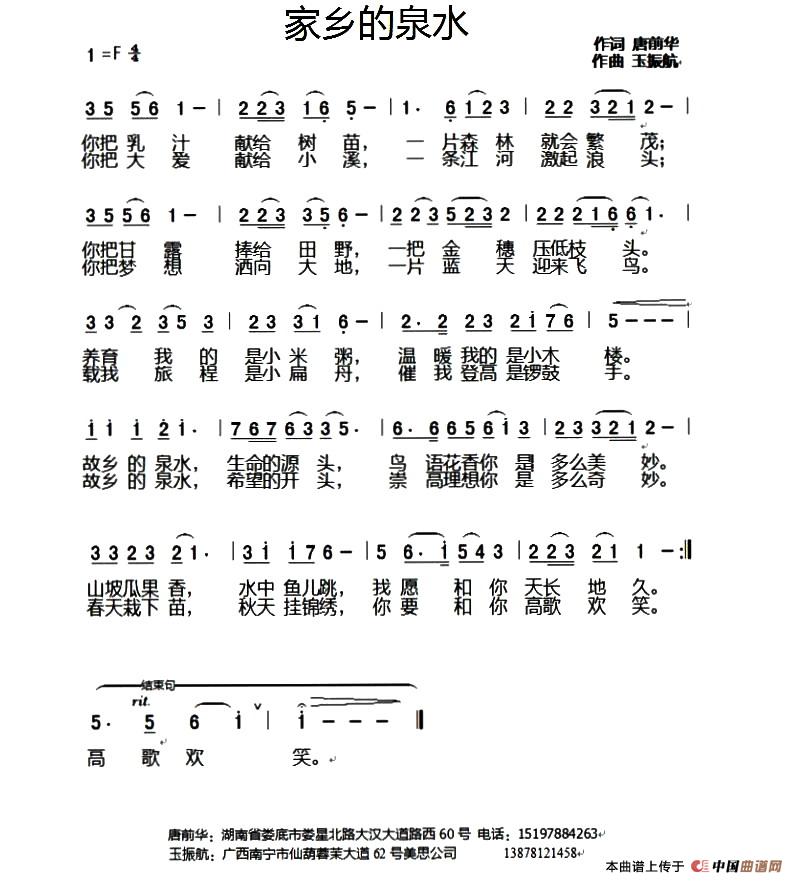 关于《家乡的泉水》曲谱的评论