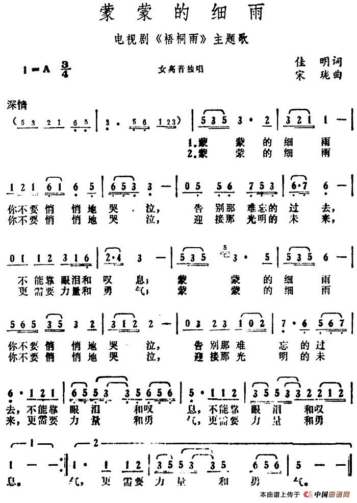 作词:佳明 作曲:宋珑 来源:中国曲谱网 上传:热爱音乐88