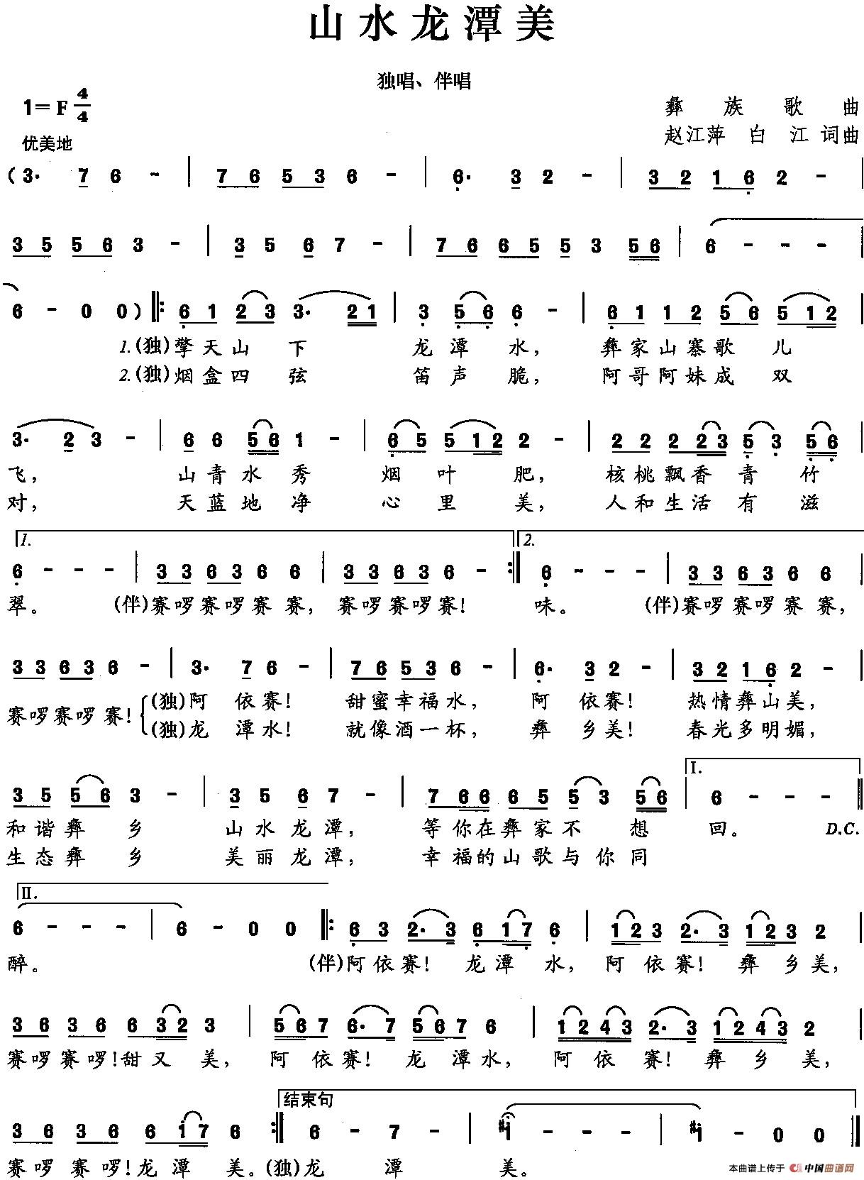 关于《山水龙潭美》曲谱的评论