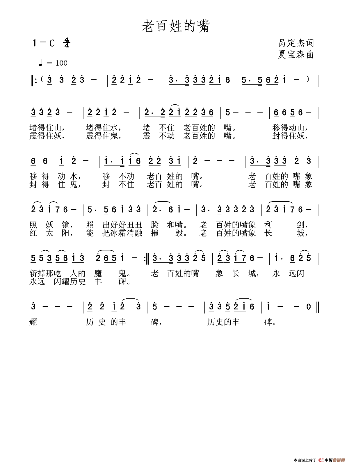 关于《老百姓的嘴》曲谱的评论