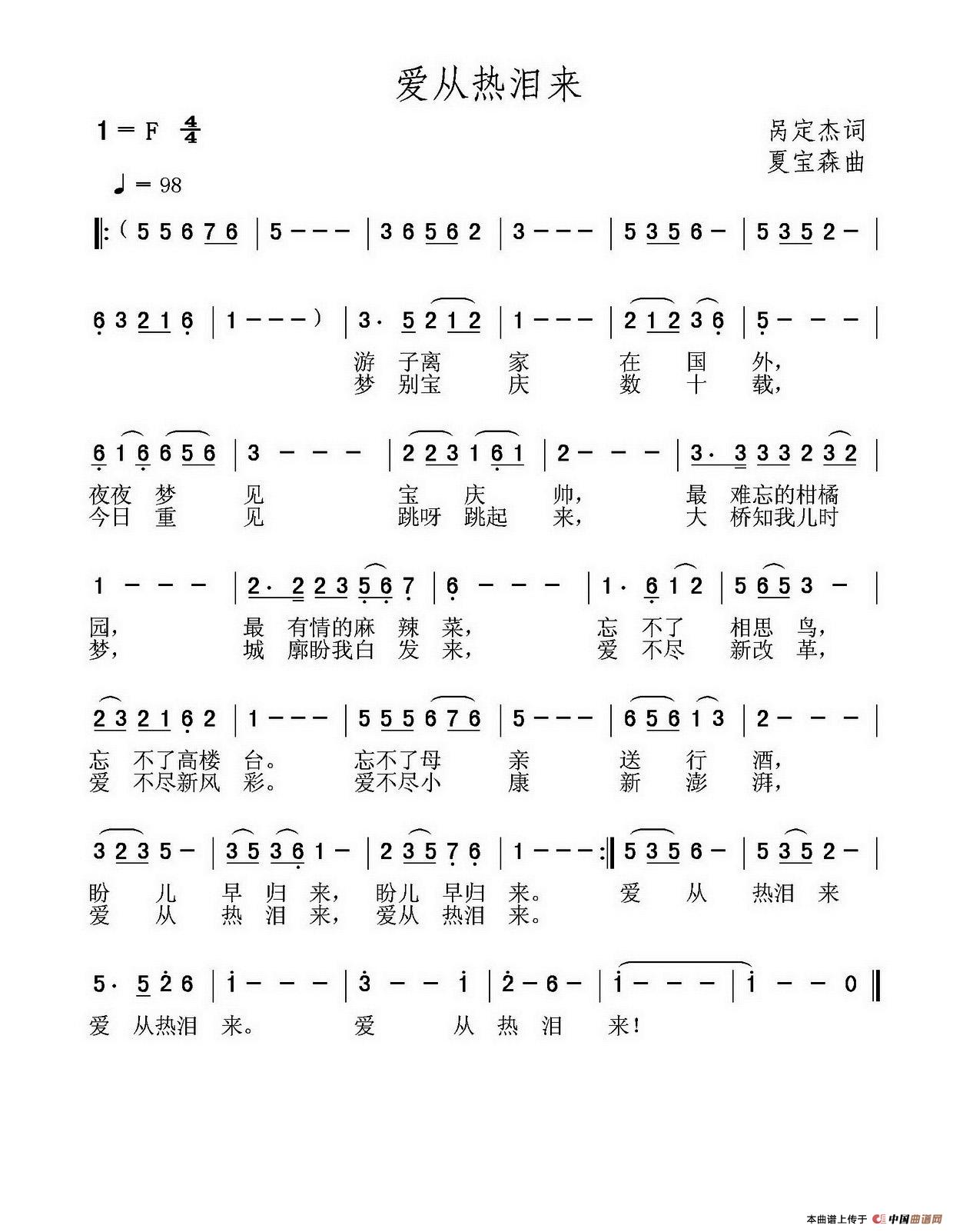 关于《爱从热泪来》曲谱的评论