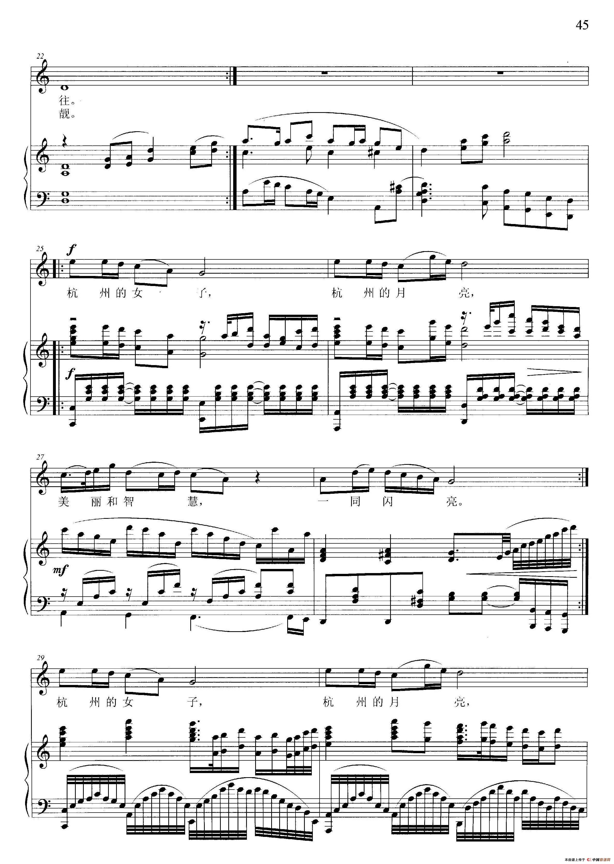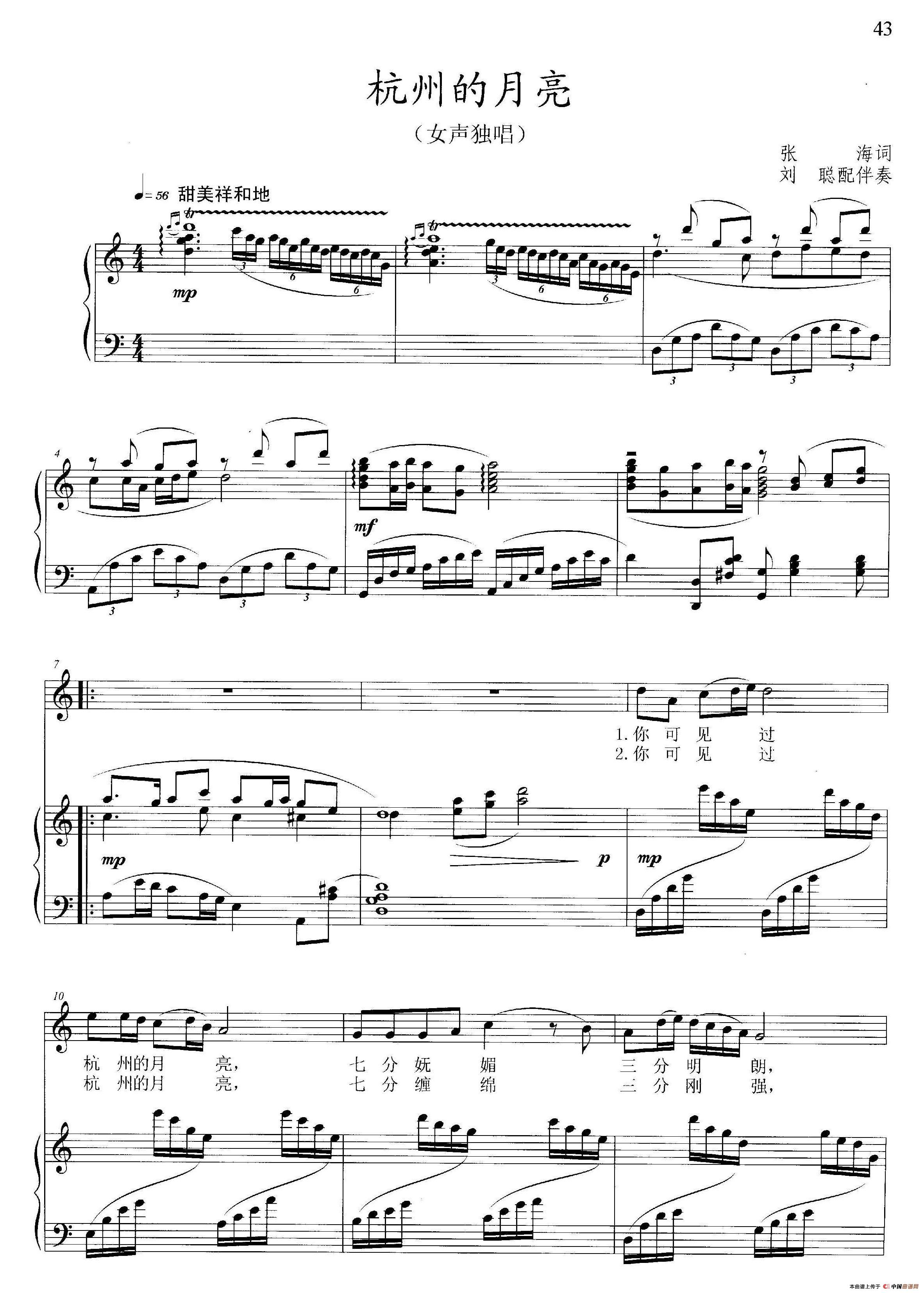 关于《杭州的月亮》曲谱的评论