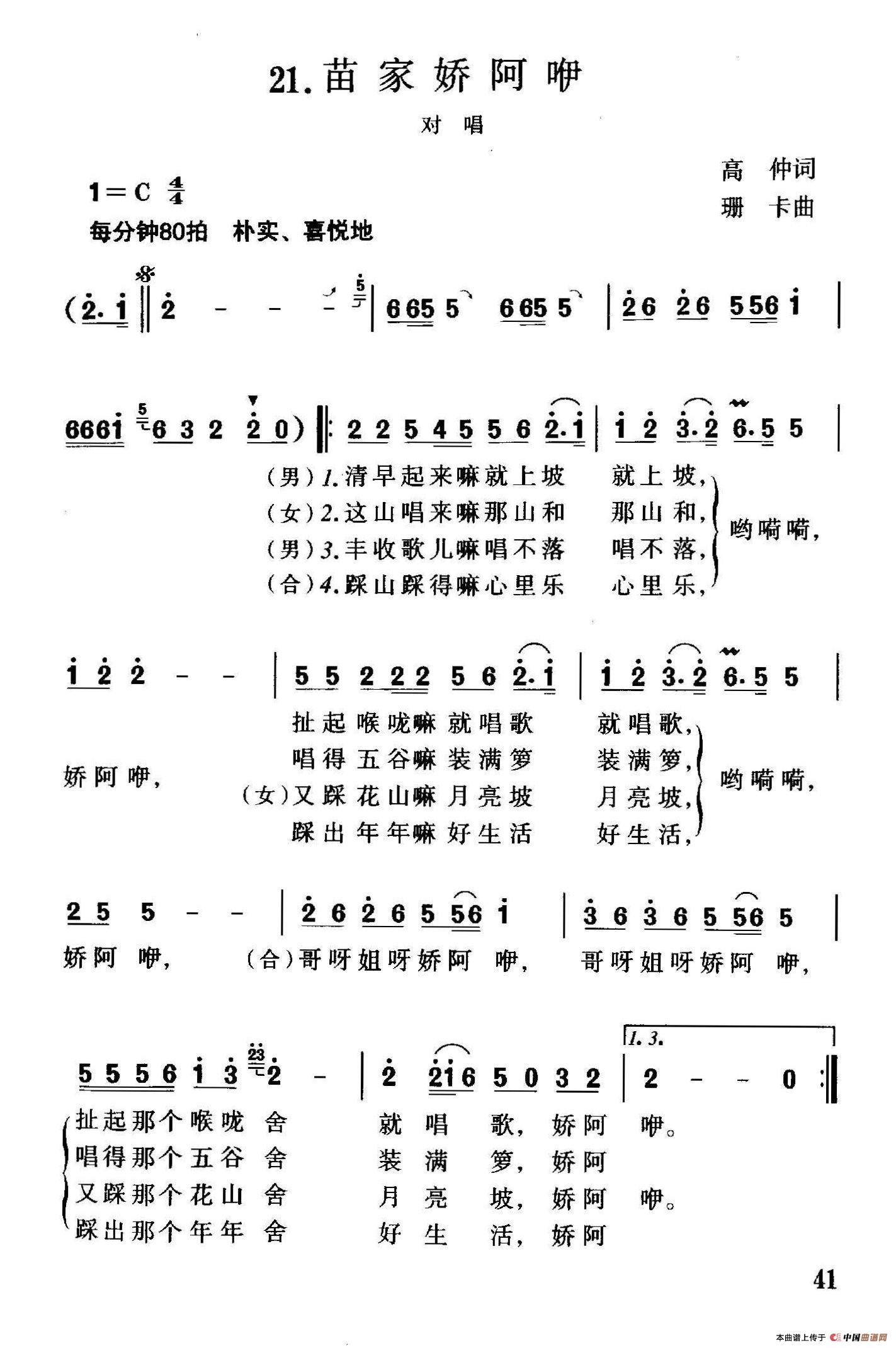关于《苗家娇阿咿》曲谱的评论