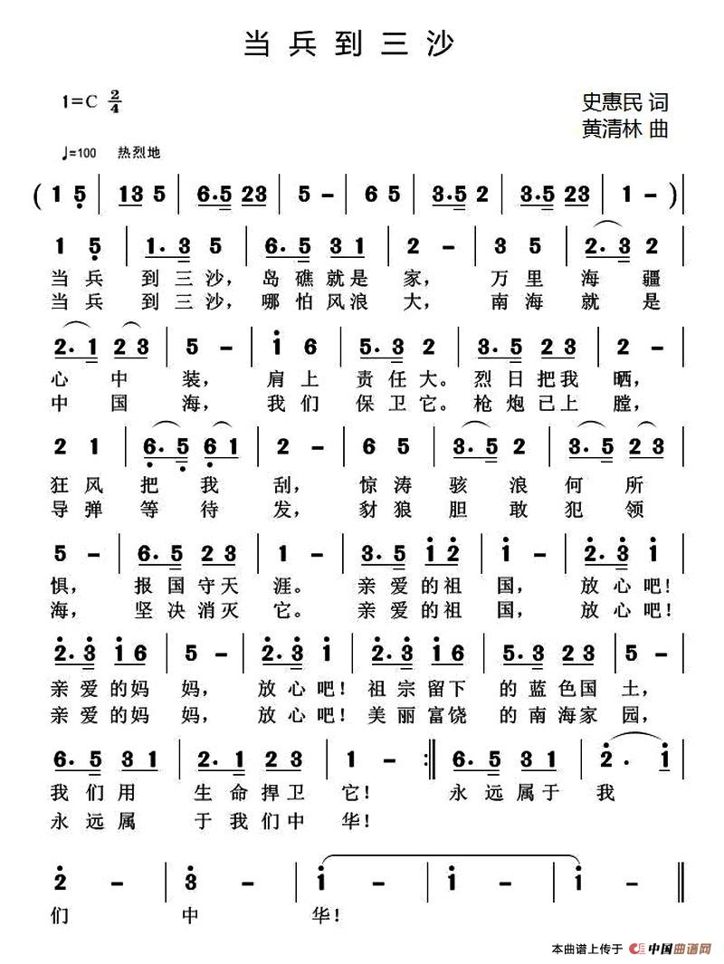 当前位置: 首页 民歌曲谱 五字歌名 当兵到三沙(史惠民词 黄清林曲)