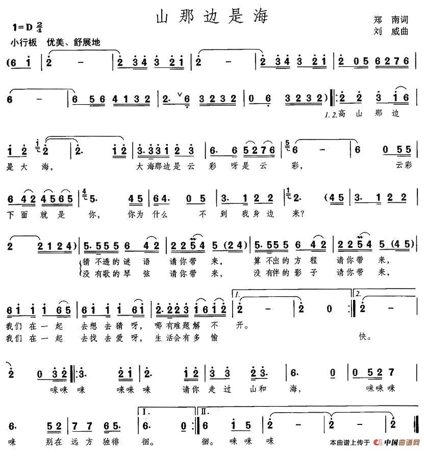 关于《山那边是海》曲谱的评论