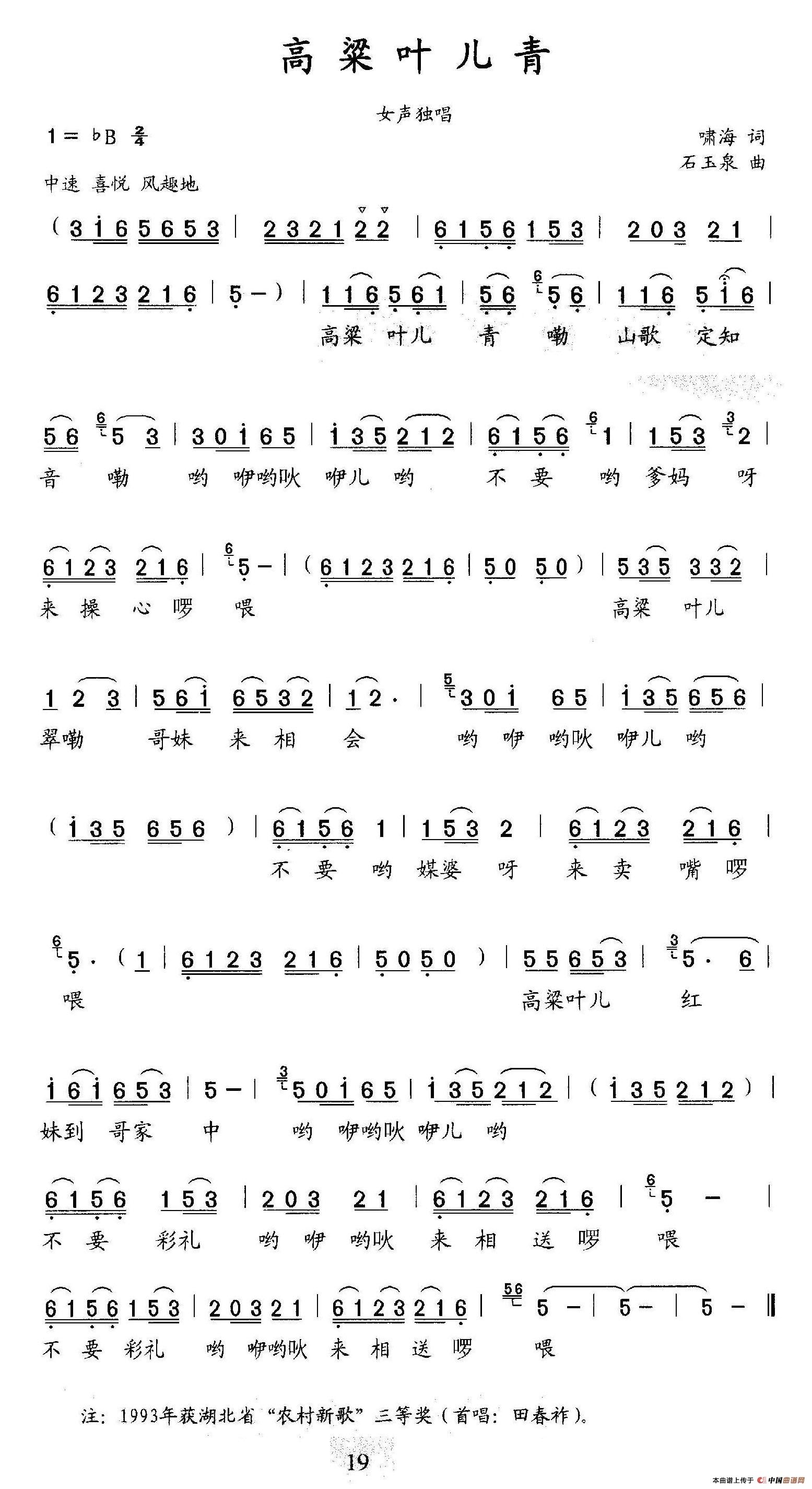 致谢:《中国曲谱网》衷心感谢作者老师馈赠原版歌谱!
