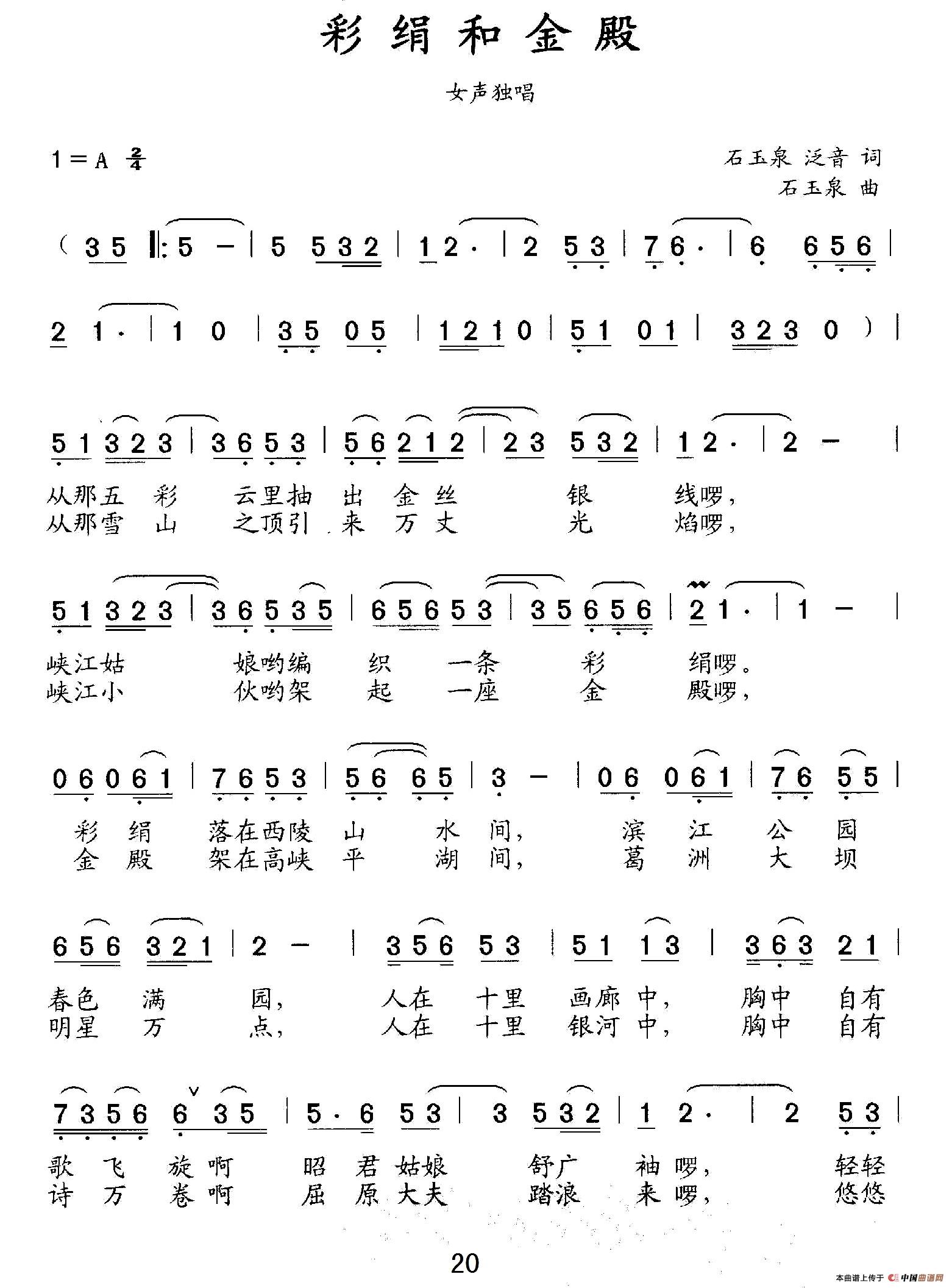 致谢:《中国曲谱网》衷心感谢作者老师馈赠原版歌谱!