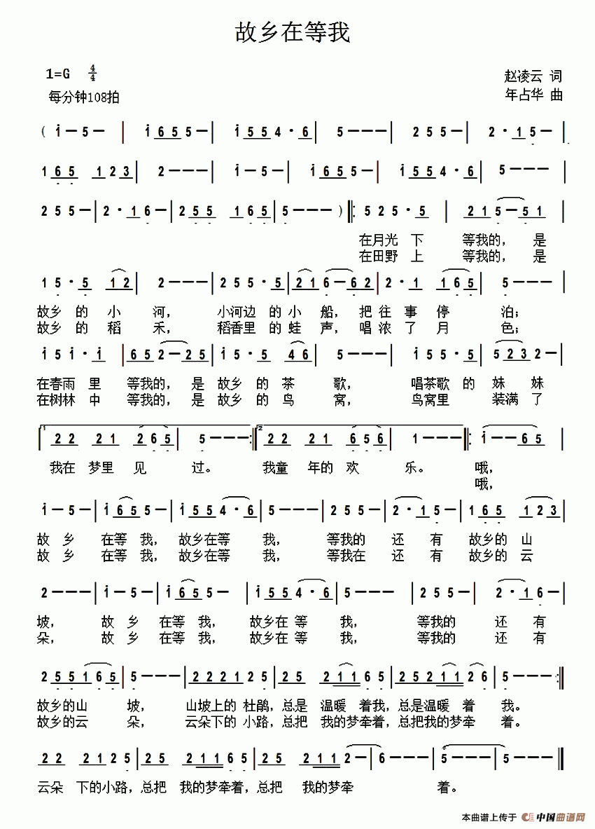 关于《故乡在等我》曲谱的评论