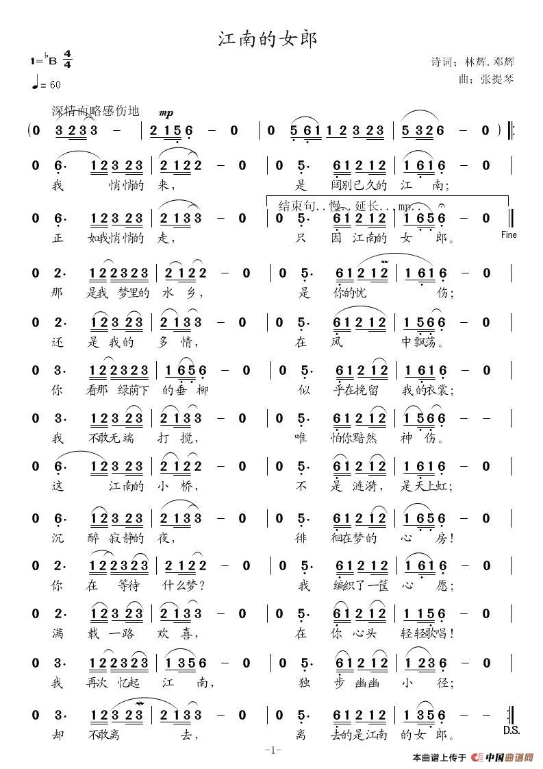 关于《江南的女郎》曲谱的评论