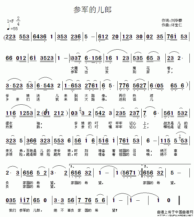 关于《参军的儿郎》曲谱的评论