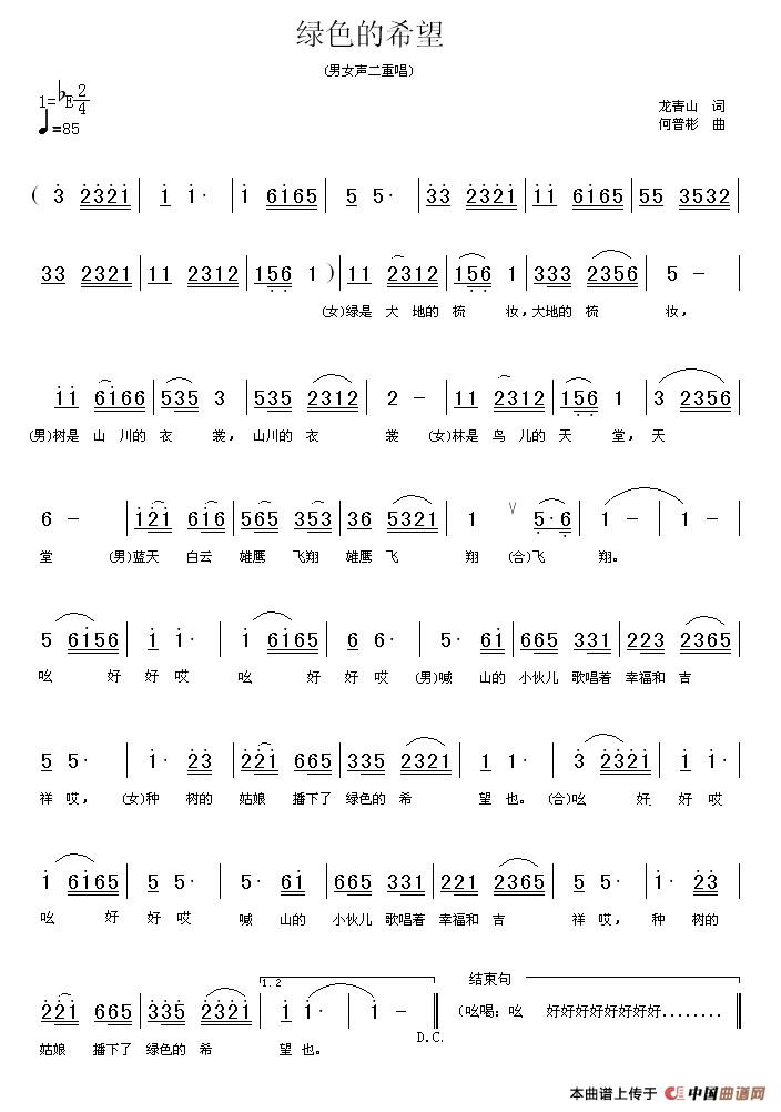 关于《绿色的希望》曲谱的评论