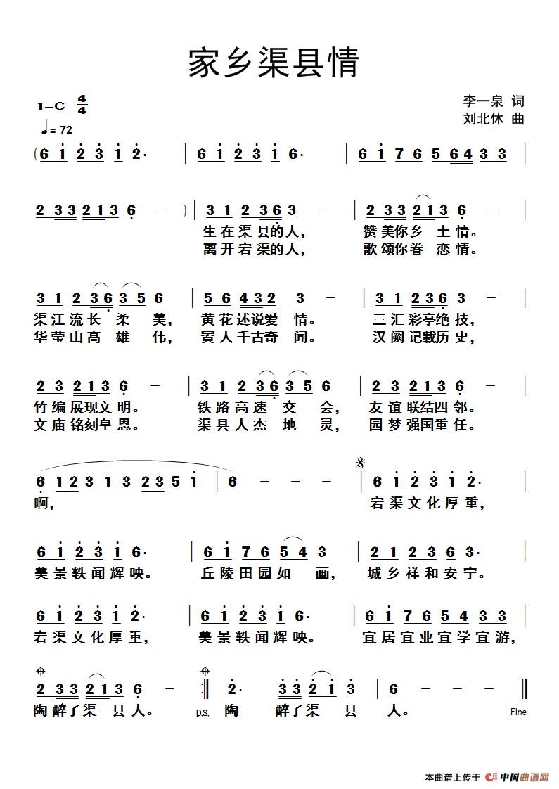 关于《家乡渠县情》曲谱的评论