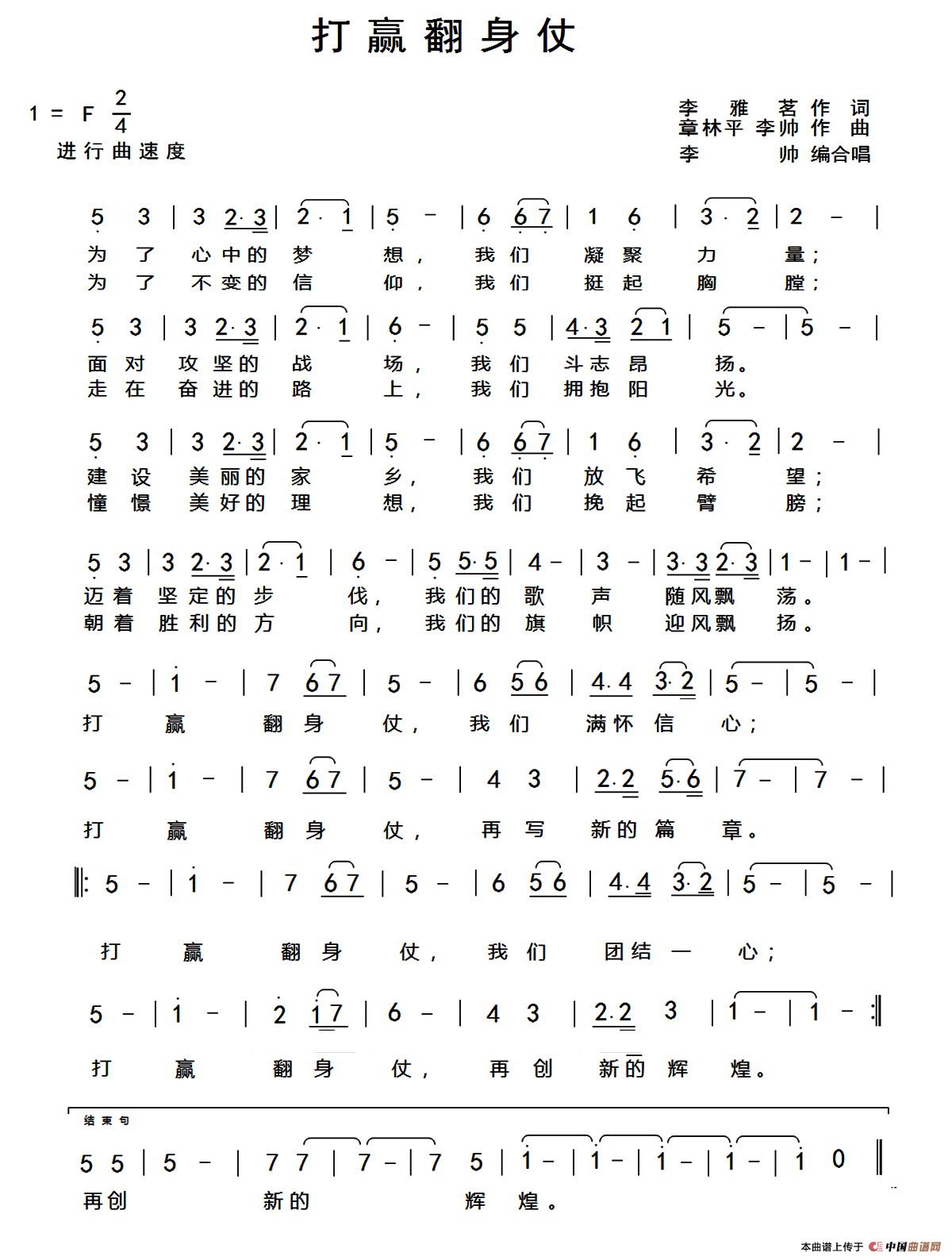 关于《打赢翻身仗》曲谱的评论