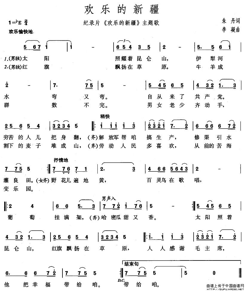关于《欢乐的新疆》曲谱的评论