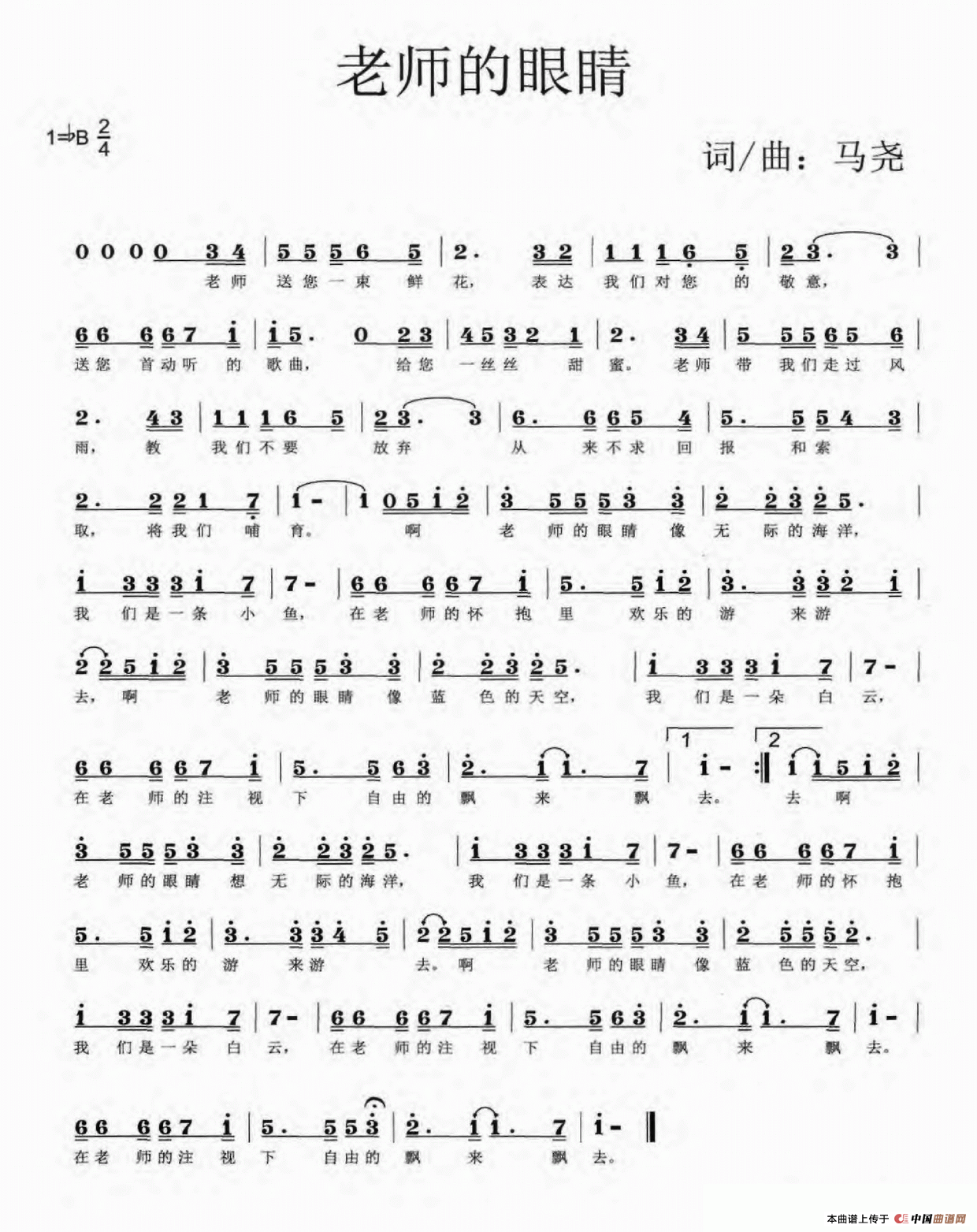 作词:马尧 作曲:马尧 来源:《中国曲谱网》 上传:沉舟侧畔过