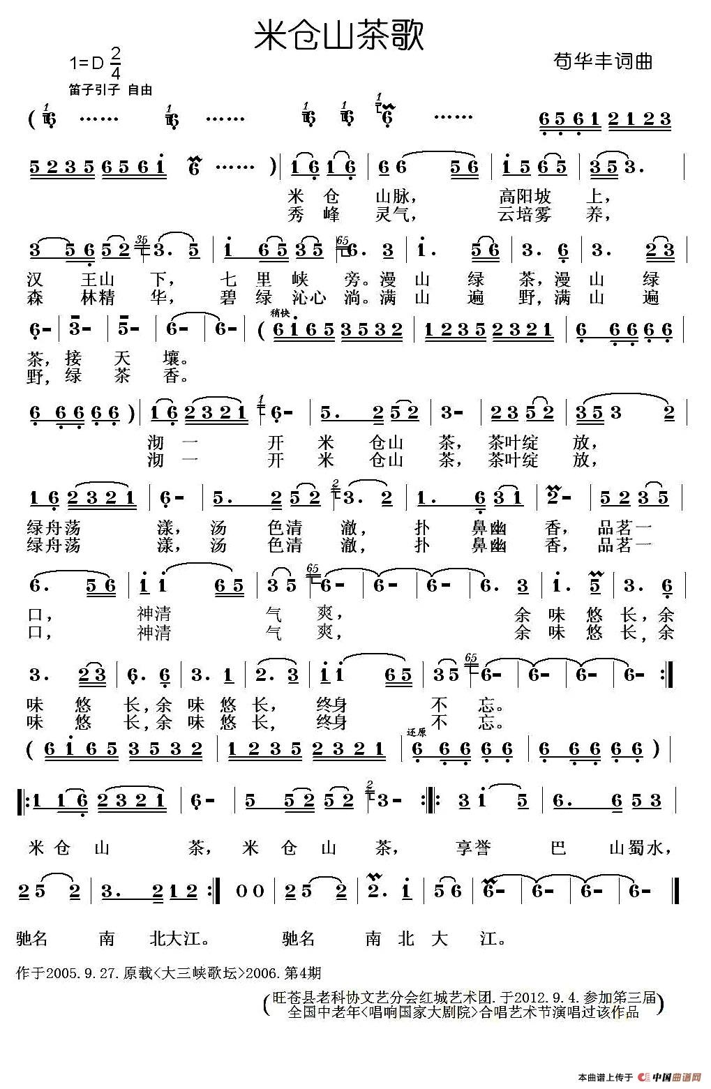 关于《米仓山茶歌》曲谱的评论