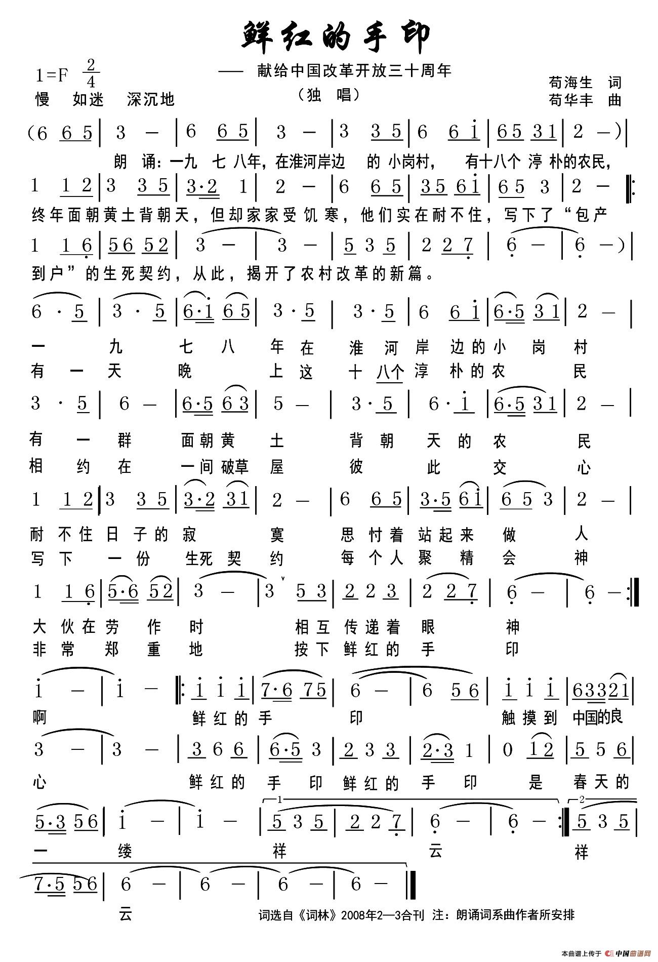 朗诵(曲作者加):一九七八年,在淮河岸边的小岗村,有十八个淳朴的农民,终年面朝黄土背朝天,但却家家受饥寒,他们实在耐不住,写下了“包产到户”的生死契约,从此,揭开了农村改革的新篇章。